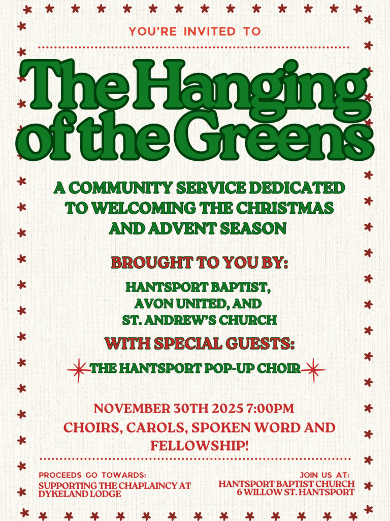 Donate online via e-transfer by using the email: offering@hantsportbaptist.ca